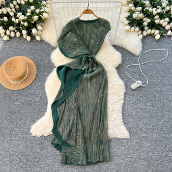 تنوعا الصيف المرأة الطبيعية الخصر a خط مطوي تنورة ميدي