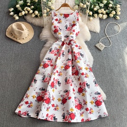 Vestido estampado de estilo europeo y americano Vestido sin mangas de banquete elegante de gama alta para mujer