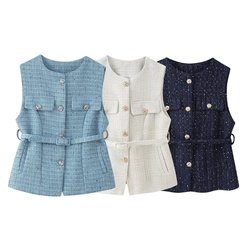 बुना हुआ स्लीवलेस वी-गर्दन टी-शर्ट महिलाओं की नई ग्रीष्मकालीन शॉर्ट टॉप