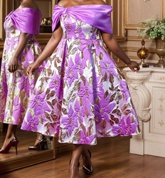 Châu Âu và Mỹ Phong Cách Mới Sexy Off-The-Vai Ăn Mặc Cao Eo Jacquard Một Dòng Thanh Lịch Tiệc Buổi Tối Váy Đầm