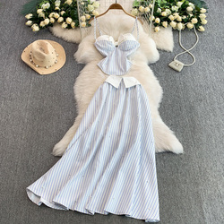 Xuyên biên giới phù hợp với áo khoác thời trang phù hợp với phụ nữ mùa xuân và mùa thu cao cấp đan quấn hông váy hai mảnh